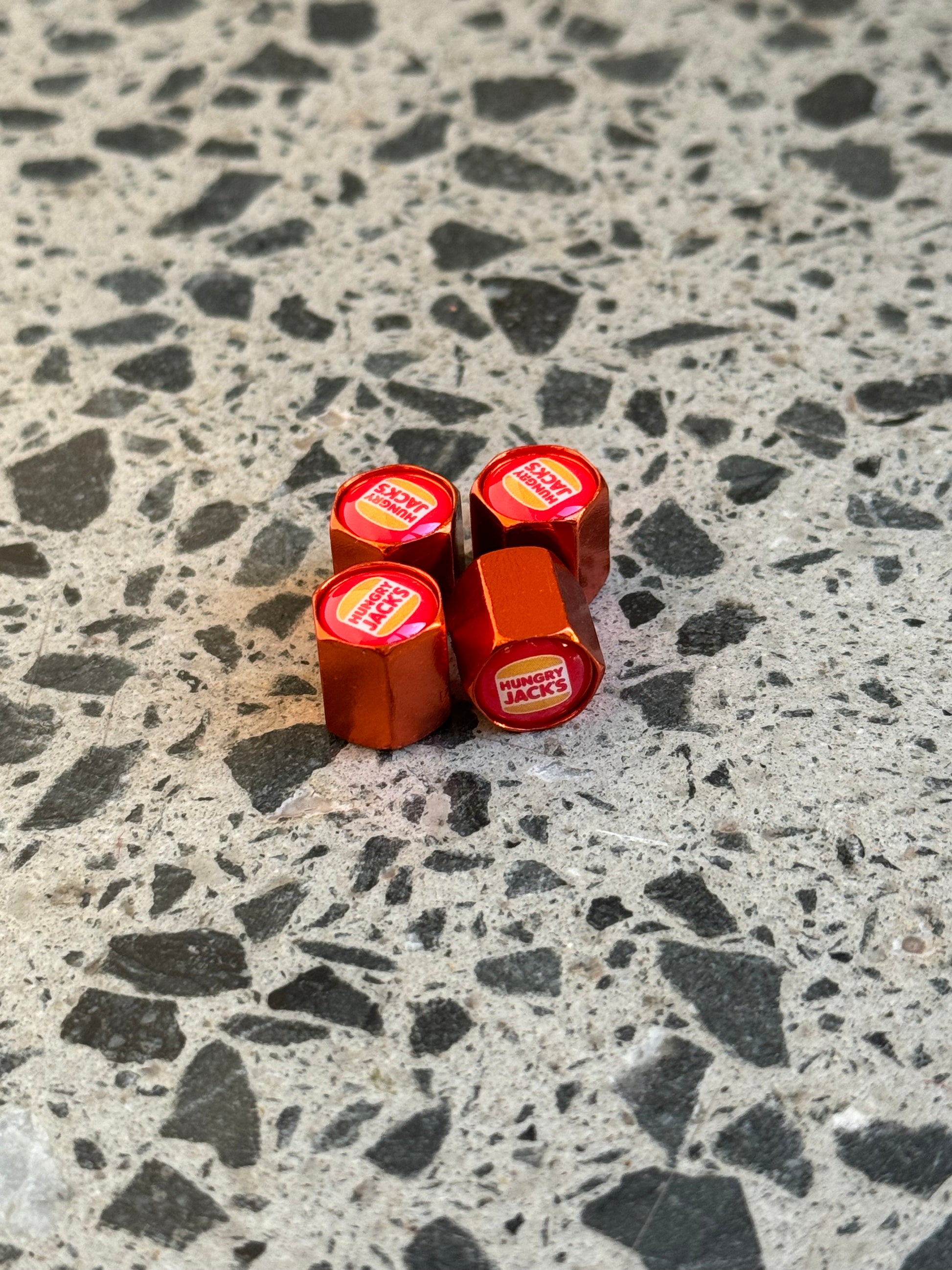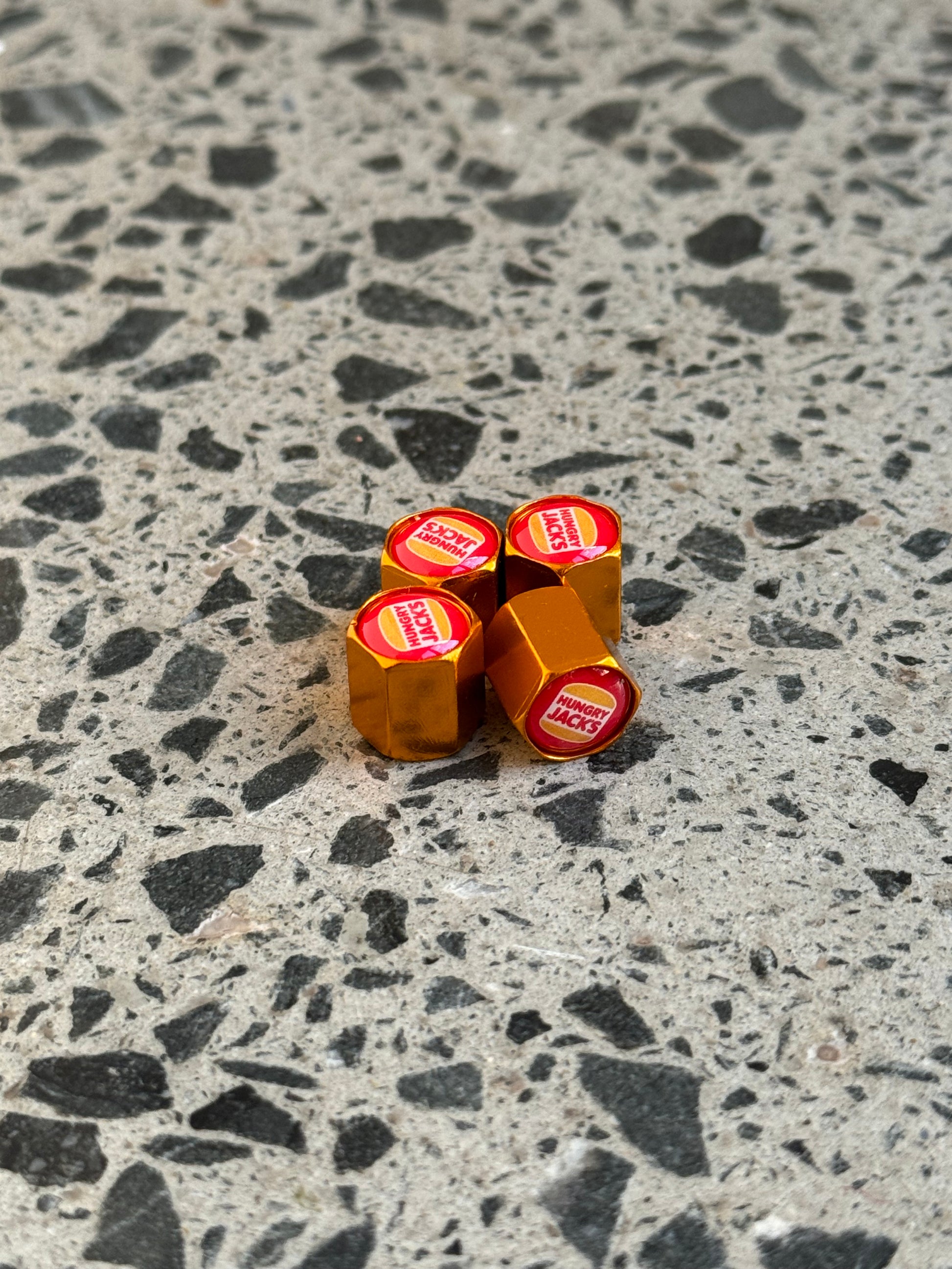 Is it true what they say? Are the burgers really better? Who knows, one thing we do know is that these valve caps are pretty neat. Repping the og symbol of a satisfied customer get around them today.